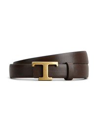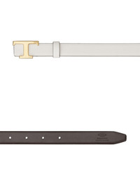 T-Timeless leather belt Highlights - Cedar brown/off-white - Leather - Gold-tone hardware - Gold-tone logo plaque - Reversible - Punched holes - Pointed tip - Adjustable fit Made in Italy Composition Leather 100% SIZE & FIT Measurement Minimum Length 27.55 in(70 cm) Maximum Length 31.49 in(80 cm) WIDTH 0.78 in(2 cm)