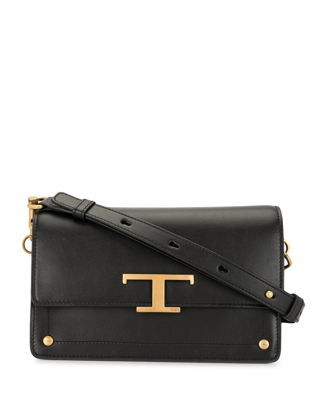 T Timeless shoulder bag Well, Tod's got this one right. This shoulder bag really puts the "T" in timeless. Constructed from black leather with gold-tone detailing, this is the kind of accessory you'll want to wear every day, for the rest of your life. And they lived happily ever after... Made in Italy Composition Outer: Leather 100% SIZE & FIT Model measurements Height 5 ft 9 in(1.76 m) Bust/Chest 29.13 in(74 cm) Hips 33.07 in(84 cm) Waist 22.83 in(58 cm) Measurement DEPTH 3.93 in(10 cm) HANDLE 7.87 in(20 cm) HEIGHT 5.51 in(14 cm) WIDTH 9.44 in(24 cm)