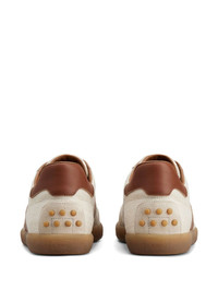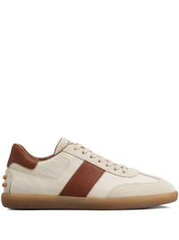 Tabs panelled sneakers Highlights - Archive beige/chocolate brown - Canvas/calf leather - Suede panelling - Colour-block panelled design - Side stripe detailing - Debossed logo to the side - Logo-print tongue - Embossed detail - Round toe - Front lace-up fastening - Contrasting heel counter - Branded insole - Flat rubber sole Made in Italy Composition Lining: Calf Leather 100% Outer: Calf Leather 100%, Fabric 100%, Calf Suede 100% Sole: Rubber 100%