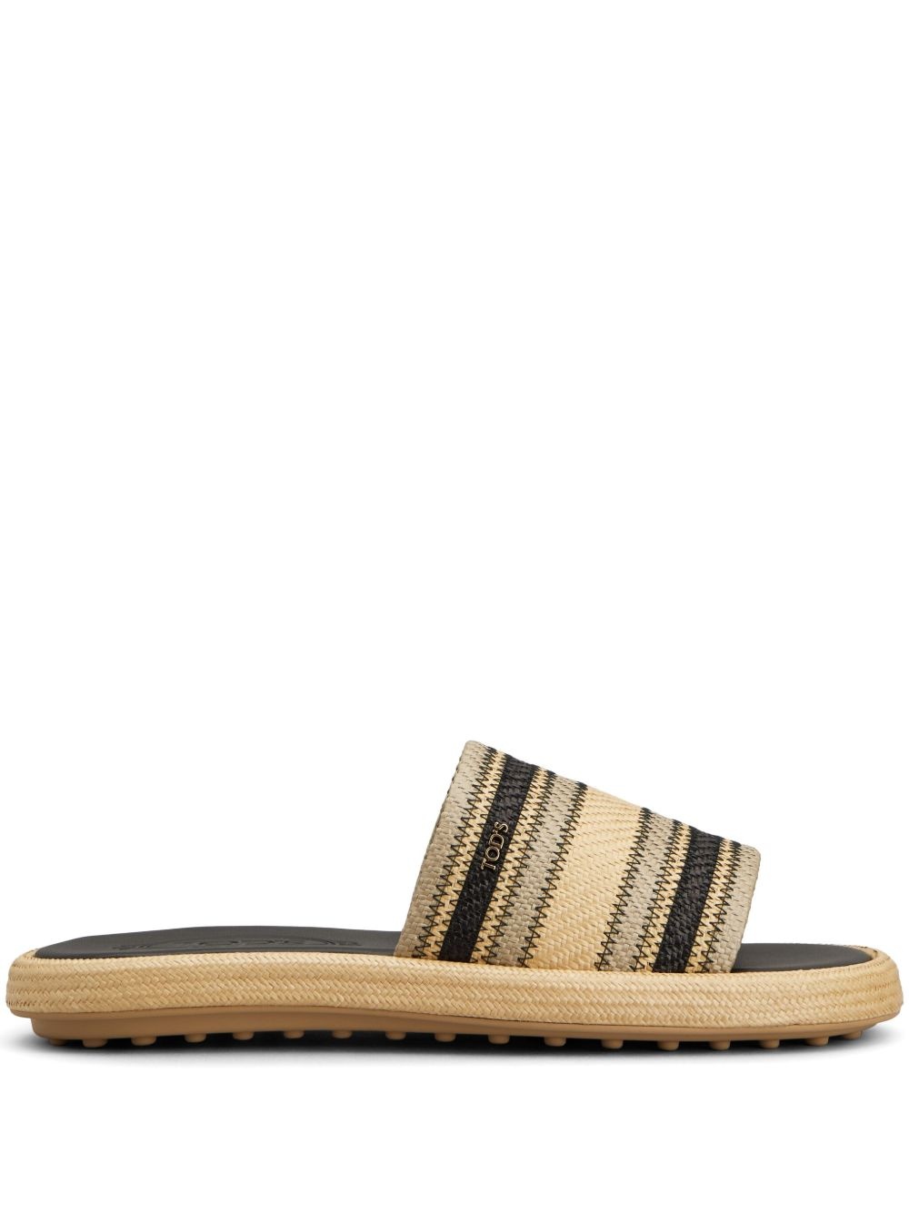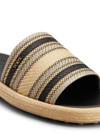 two-tone slides Highlights - Sand beige - Slip-on style - Rubber sole - Logo stamp at side - Single toe strap Made in Italy Composition Outer: Polyamide 100%, Raffia 100% Lining: Calf Leather 100% Sole: Rubber 100%
