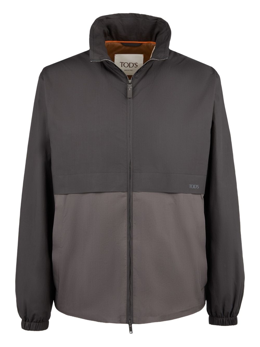 two-tone zip-up jacket Highlights - Dark-grey - Zip fastening - Stand collar - Two-tone design - Elasticated cuffs Made in Italy Composition Outer: Cotton 100%, Polyurethane 100%, Leather 100% Lining: Cotton 100%, Polyester 100% Washing instructions Read Manufacturer Guidelines