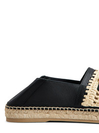 woven-raffia leather espadrilles Highlights - Black - Leather - Woven raffia design - Smooth grain - Round toe - Slip-on style - Branded leather insole - Flat rubber sole Made in Italy Composition Leather 100%