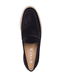woven-trim penny loafers Tod's uses its footwear expertise to create this pair of penny loafers that balances formal and casual elements. The pair is constructed from soft navy-blue suede and features a woven trim around a pebbled rubber sole. Made in Italy Composition Sole: Rubber 100% Outer: Suede 100% Lining: Calf Leather 100% SIZE & FIT Measurement HEEL 0.98 in(2.5 cm)