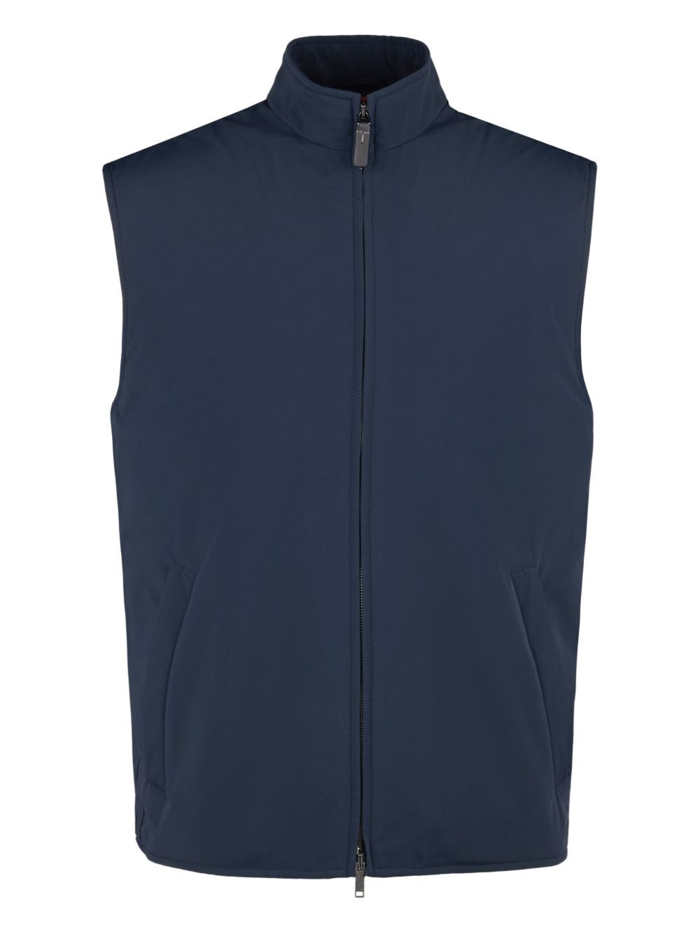 zip-front stand-collar gilet Highlights - Navy blue - Stand collar - Zip fastening - Sleeveless - Welt pockets - High neck Made in Italy Composition Lining: Polyurethane 100% Outer: Polyamide 80%, Elastane 20% Washing instructions Read Manufacturer Guidelines