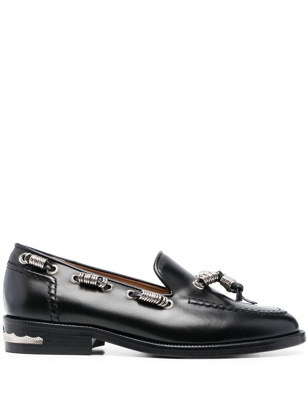 AJ1230 leather loafers black calf leather silver-tone hardware almond toe slip-on style flat sole Imported Composition Outer: Calf Leather 100% Lining: Calf Leather 100% Sole: Calf Leather 100% SIZE & FIT Measurement HEEL 1.18 in(3 cm) Sole height 0.39 in(1 cm)