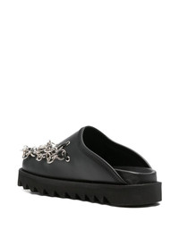 chain-embellished leather mules Highlights - Black - Chain embellishment - Slip-on style - Round toe - Flat sole Imported Composition Lining: Polyester 50%, Polyamide 45%, Elastane 5% Sole: Synthetic Rubber 100% Outer: Leather 100%