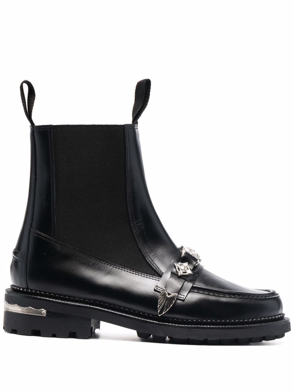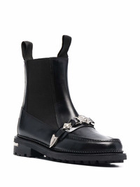 embellished leather boots black bos taurus metallic heel counter low block heel decorative buckle detailing elasticated side panels pull-tab at the heel pull-tab at the tongue Imported Composition Leather 100% SIZE & FIT Measurement CIRCUMFERENCE 9.84 in(25 cm) HEEL 1.37 in(3.5 cm) HEIGHT 5.7 in(14.5 cm) Sole height 0.59 in(1.5 cm)