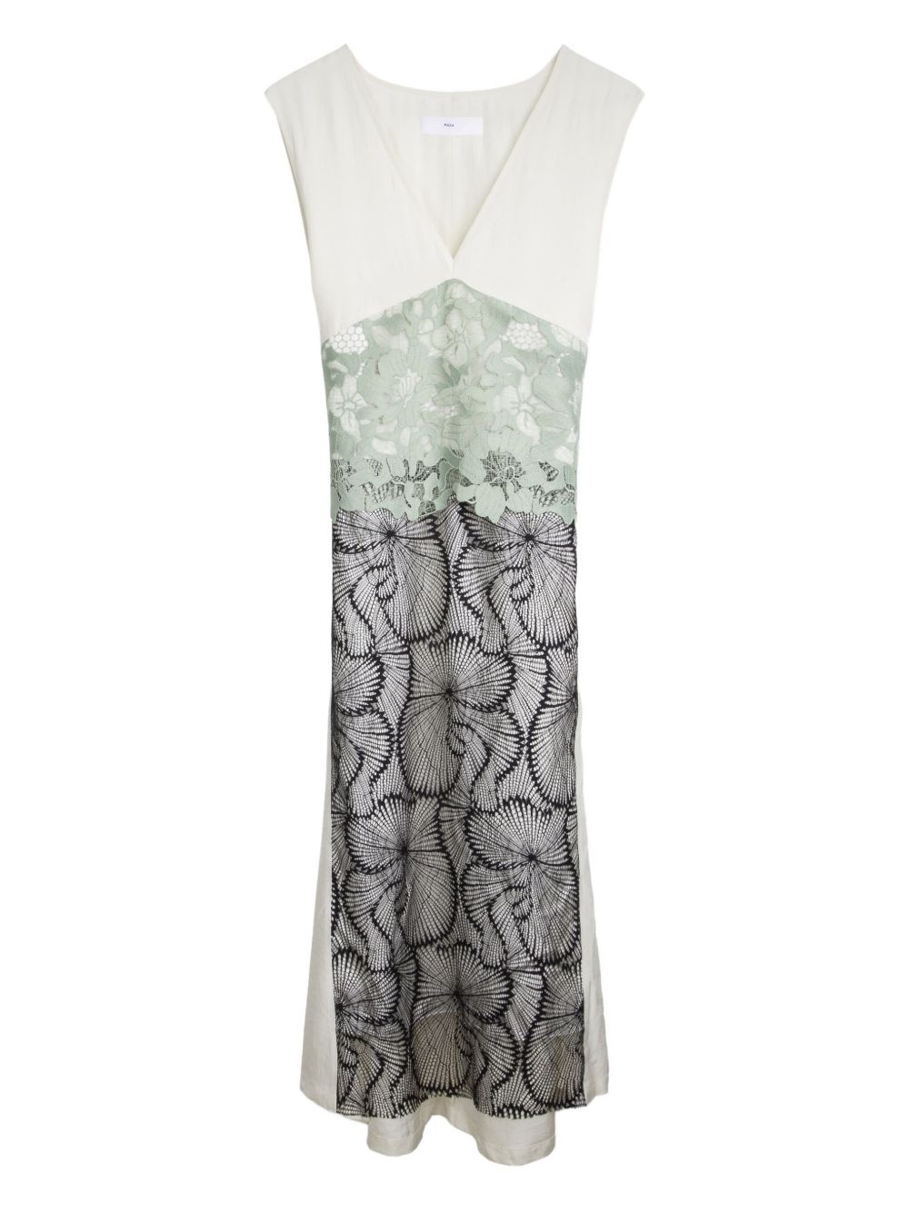 lace-panelled dress Highlights - White - Rear tie fastening - V-neck - Sleeveless Imported Composition Polyester 100%, Nylon 100%, Acetate 100%