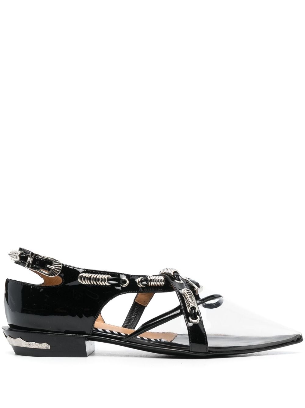 ring-detail leather ballerina shoes Highlights - Black - Calf leather - Patent finish - Ring hardware detailing - Silver-tone hardware - Cut-out detailing - Pointed toe - Double buckle fastening - Branded leather insole - Leather sole - 30mm stacked heel Imported Composition Outer: Leather 50%, Vinyl 50% Lining: Leather 100% Sole: Leather 100% SIZE & FIT Measurement HEEL 0.98 in(2.5 cm)
