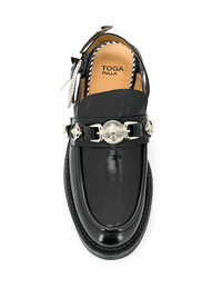 sling-back mule loafers Highlights - Black - Leather/rubber - Silver-tone stud detailing - Buckle-fastening slingback strap - Branded insole - Round toe - Flat sole Imported Composition Leather 100% SIZE & FIT Measurement HEEL 1.77 in(4.5 cm) Sole height 0.78 in(2 cm)