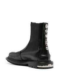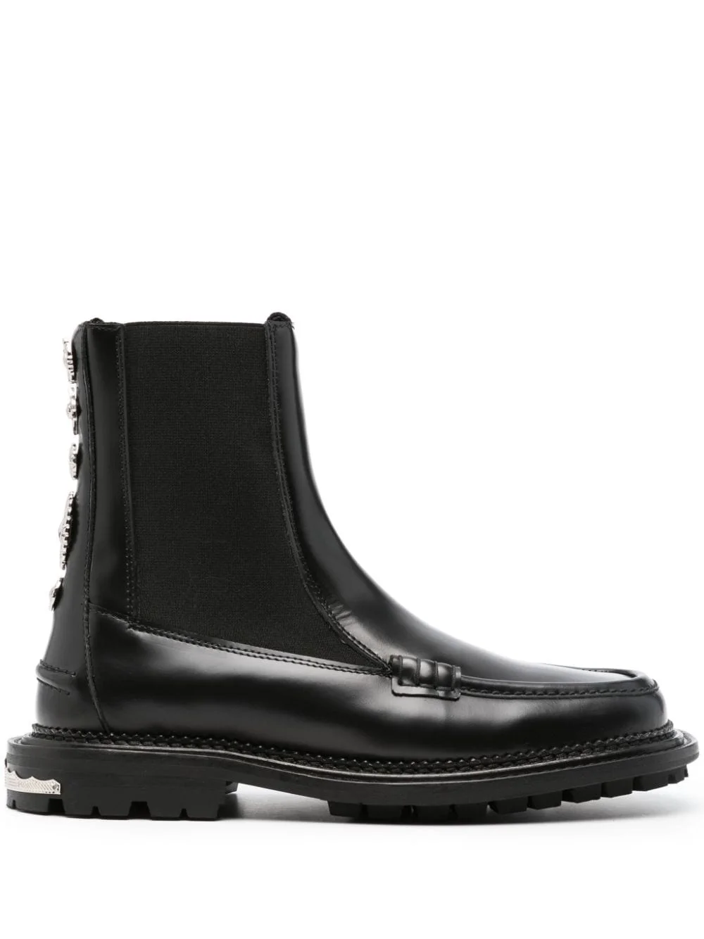 stud-embellished leather boots Highlights - Black - Calf leather - Stretch-design - Silver-tone hardware - Stud embellishment - Square toe - Elasticated side panels - Slip-on style - Branded leather insole - Rubber sole Imported Composition Leather 100% SIZE & FIT Measurement HEEL 1.18 in(3 cm) HEIGHT 5.9 in(15 cm) Sole height 0.78 in(2 cm)