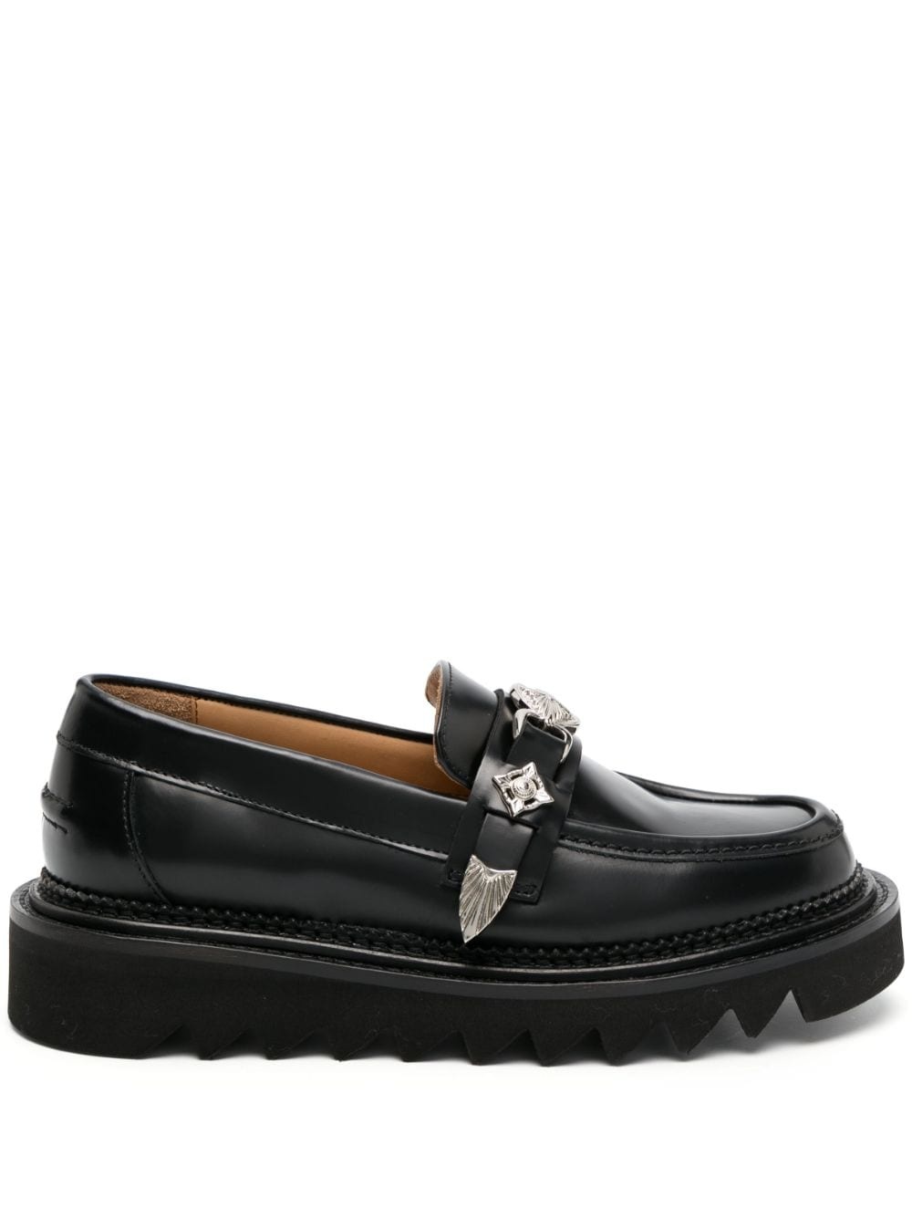 stud-embellished leather loafers Highlights - Black - Calf leather - Patent finish - Silver-tone stud embellishment - Round toe - Slip-on style - Branded footbed - Rubber lug sole Imported Composition Leather 100% SIZE & FIT Measurement HEEL 1.77 in(4.5 cm) Sole height 1.37 in(3.5 cm)