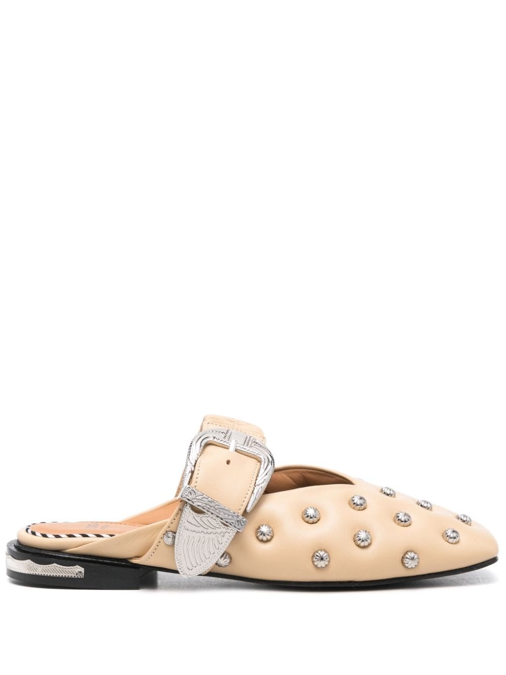 studded mules Highlights - Beige - Leather - Smooth grain - Stud embellishment - Stacked heel - Buckle-strap fastening - Square toe - Branded leather insole - Leather sole Imported Composition Outer: Bos Taurus 100% Lining: Bos Taurus 100% Sole: Leather 100% SIZE & FIT Measurement HEEL 0.78 in(2 cm)