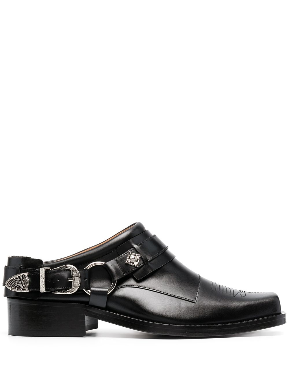 buckled leather slip-on boots