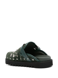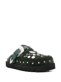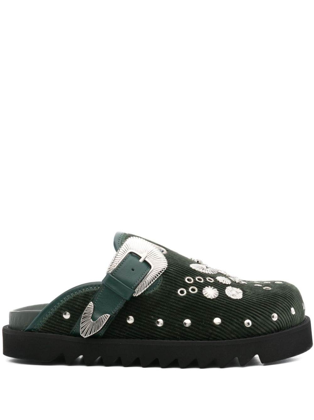 eyelet-metal slippers Highlights - Fern green - Cotton - Corduroy - Leather trim - Metal eyelet detailing - Silver-tone stud detailing - Slip-on style - Decorative buckle detail - Round toe - Branded footbed - Ridged rubber sole Imported Composition Outer: Cotton 90%, Bos Taurus 10% Lining: Polyester 100% Sole: Rubber 100% SIZE & FIT Measurement HEEL 1.57 in(4 cm) Sole height 1.37 in(3.5 cm)