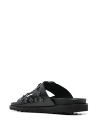 BLACK LEATHER GUNMETAL HARDWARE SANDAL