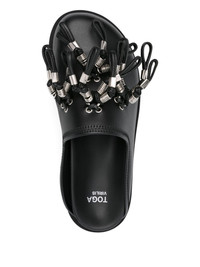 tassel-embellished leather mules Highlights - Black - Leather upper - Tassel embellishment - Slip-on style - Rubber sole Imported Composition Outer: Leather 100% Lining: Polyester 50%, Polyamide 45%, Elastane 5% Sole: Rubber 100%
