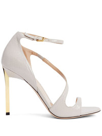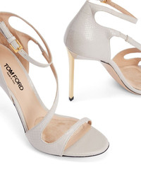 110mm leather sandals Highlights - Grey - Leather - Snake print - Buckle-fastening ankle strap - High heel - Almond open toe - Branded leather insole Made in Italy Composition Outer: Ayers Snakeskin 82%, Steel 10%, Brass 5%, Goat Skin 3% Lining: Calf Leather 100%, Goat Skin 100%
