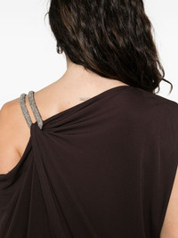 asymmetric dress Highlights - Brown - One-shoulder - Short sleeves - Asymmetric design Made in Italy Composition Viscose 100%, Brass 50%, glass 50% SIZE & FIT Model measurements Height 5 ft 9 in(1.75 m) Bust/Chest 32.67 in(83 cm) Hips 36.22 in(92 cm) Waist 24.8 in(63 cm) Washing instructions Dry Clean Only