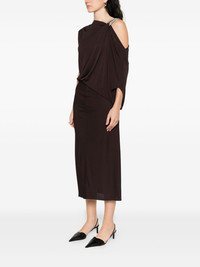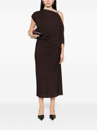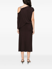 Asymmetric draped embellished jersey midi dress Dark brown