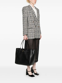 Audrey leather tote bag Highlights - Black - Calf leather - Pebbled texture - Two top handles - Logo print to the front - Adjustable strap to the front with metal t detail - Main compartment - Internal zip-fastening pocket - Internal logo stamp - Full lining - Gold-tone hardware - Open top - This piece comes complete with a protective dust bag. Made in Italy Composition Lining: Polyester 100% Outer: Calf Leather 100%, Brass 100% SIZE & FIT Model measurements Height 5 ft 9 in(1.75 m) Bust/Chest 34.64 in(88 cm) Hips 36.61 in(93 cm) Waist 26.37 in(67 cm) Measurement DEPTH 7.87 in(20 cm) HANDLE 8.26 in(21 cm) HEIGHT 12.99 in(33 cm) WIDTH 18.5 in(47 cm)