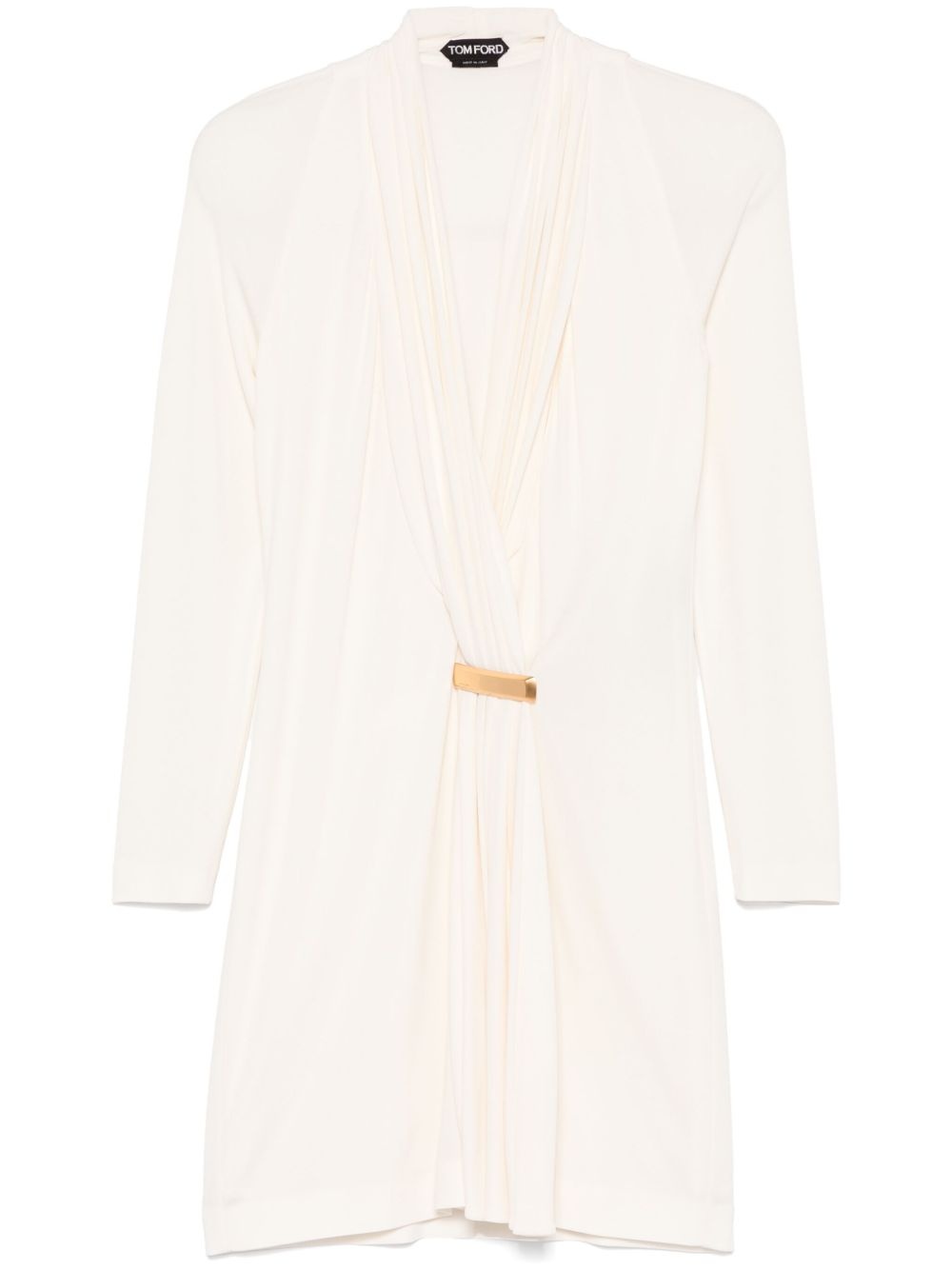 bar-detail V-neck mini dress Highlights - White - V-neck - Long sleeves - Draped detailing - Straight hem Made in Italy Composition Outer: Viscose 100% Lining: Viscose 100% SIZE & FIT Model measurements Height 5 ft 10 in(1.78 m) Bust/Chest 33.46 in(85 cm) Hips 36.22 in(92 cm) Waist 23.22 in(59 cm) FittingInformation Designed for a close fit throughout Made from a midweight non-stretch fabric, this piece offers minimal elasticity when worn