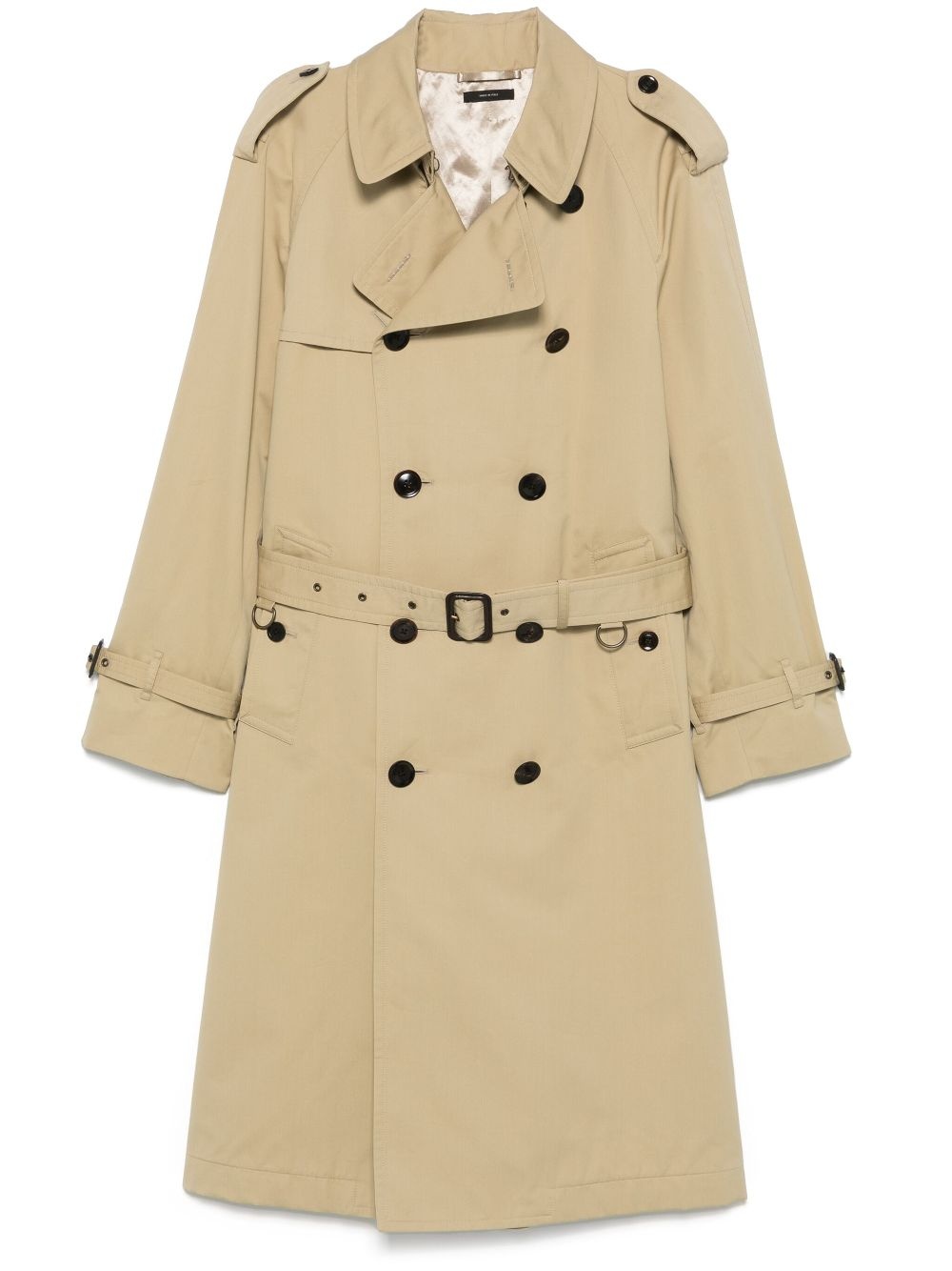belted trench coat Highlights - Archive beige - Double-breasted button fastening - Belted cuffs - Two side welt pockets - Internal pocket Made in Italy Composition Cotton 85%, Cupro 61%, Viscose 39%, Silk 15% SIZE & FIT Model measurements Height 6 ft 1 in(1.85 m) Bust/Chest 35.82 in(91 cm) Hips 37.79 in(96 cm) Waist 29.13 in(74 cm) FittingInformation Designed to be unstructured, offering a loose fit throughout The belt offers adjustability for fitted preferences Made from a midweight non-stretch fabric