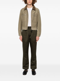 Bengal-stripe pleated trousers Highlights - Olive green - Elasticated waistband - Concealed front button fastening - Two side slash pockets - Two rear patch pockets Made In Italy Composition Cotton 74%, Silk 26% SIZE & FIT Model measurements Height 6 ft 1 in(1.86 m) Bust/Chest 33.46 in(85 cm) Hips 35.43 in(90 cm) Waist 31.1 in(79 cm) FittingInformation Designed for a tapered leg, offering a loose unrestricted fit over the leg with a closer fit towards the ankle The elasticated waist allows for a comfortable fit Made from a midweight non-stretch fabric, this piece offers minimal elasticity when worn Washing instructions Dry Clean Only