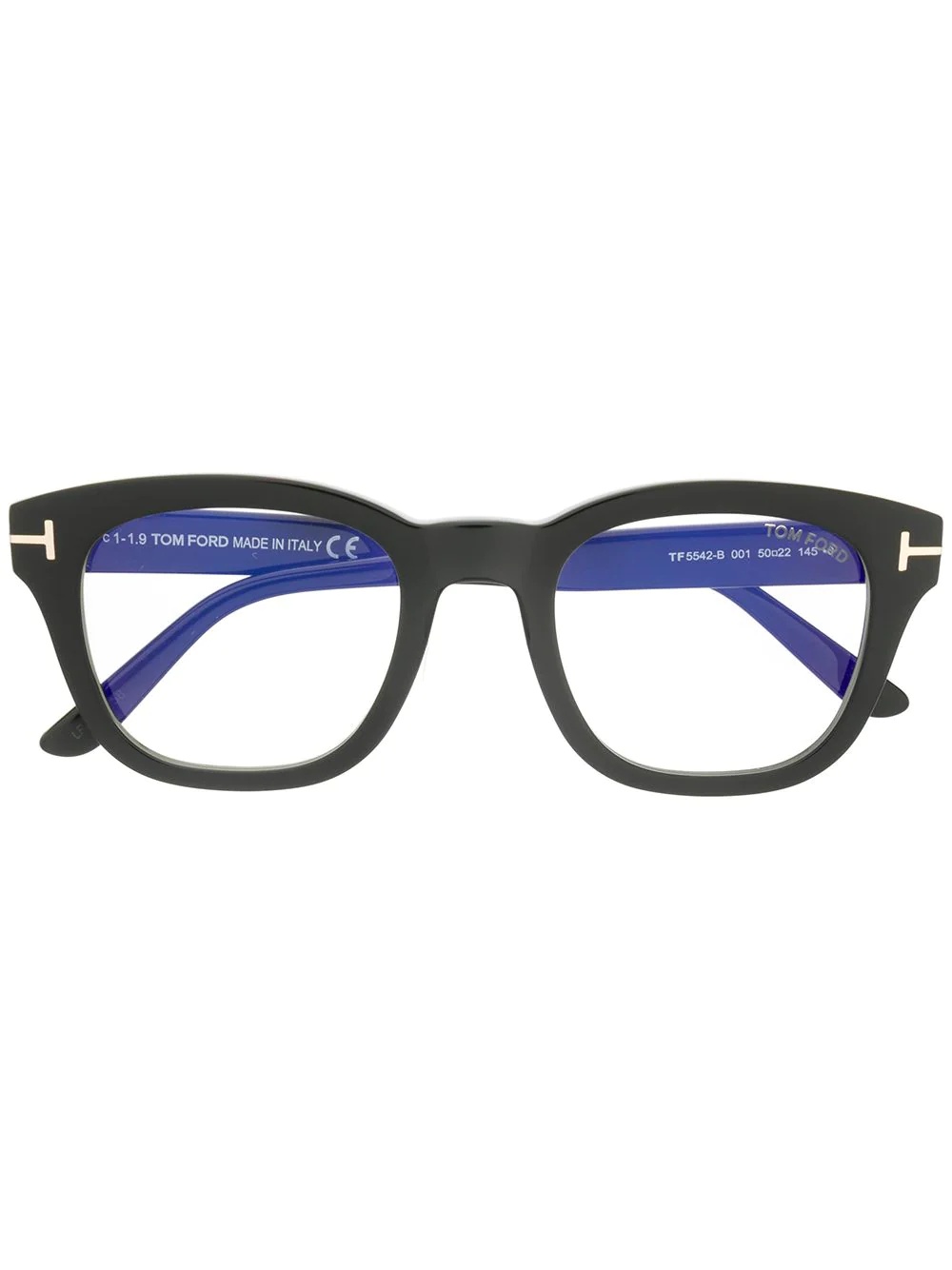 blue block soft square glasses Black blue block soft square glasses from TOM FORD Eyewear featuring wayfarer frames, gold-tone metal and a brand logo on external arm. This item comes with a protective case. This item is unisex. Made in Italy Composition Acetate 100% SIZE & FIT Measurement Bridge Width 0.86 in(2.2 cm) Lens Diameter 1.96 in(5 cm) Total Width 5.7 in(14.5 cm) Arm Length 5.7 in(14.5 cm)