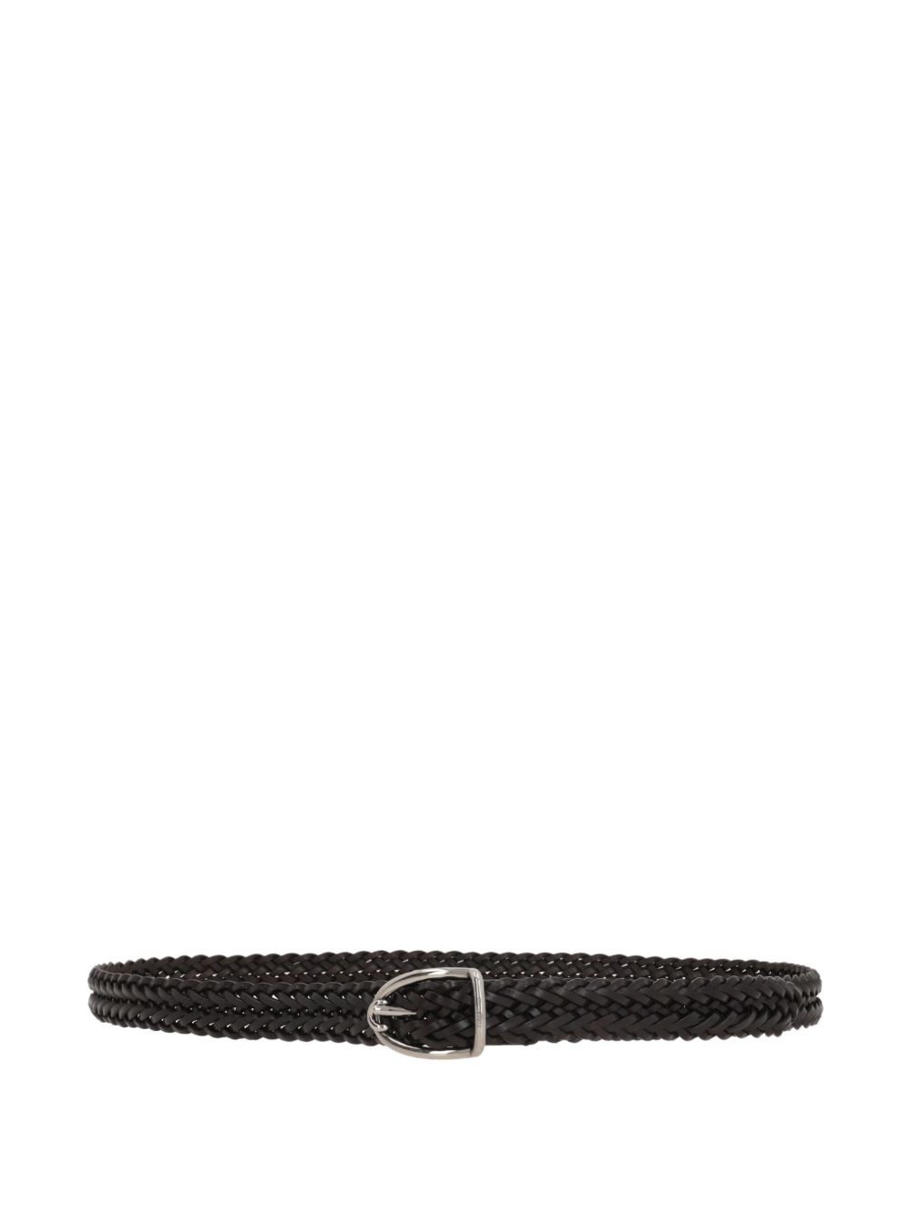 braided leather belt Highlights - Dark brown - Leather - Braided texture - Silver-tone buckle - Engraved logo Made in Italy Composition Calf Leather 100%