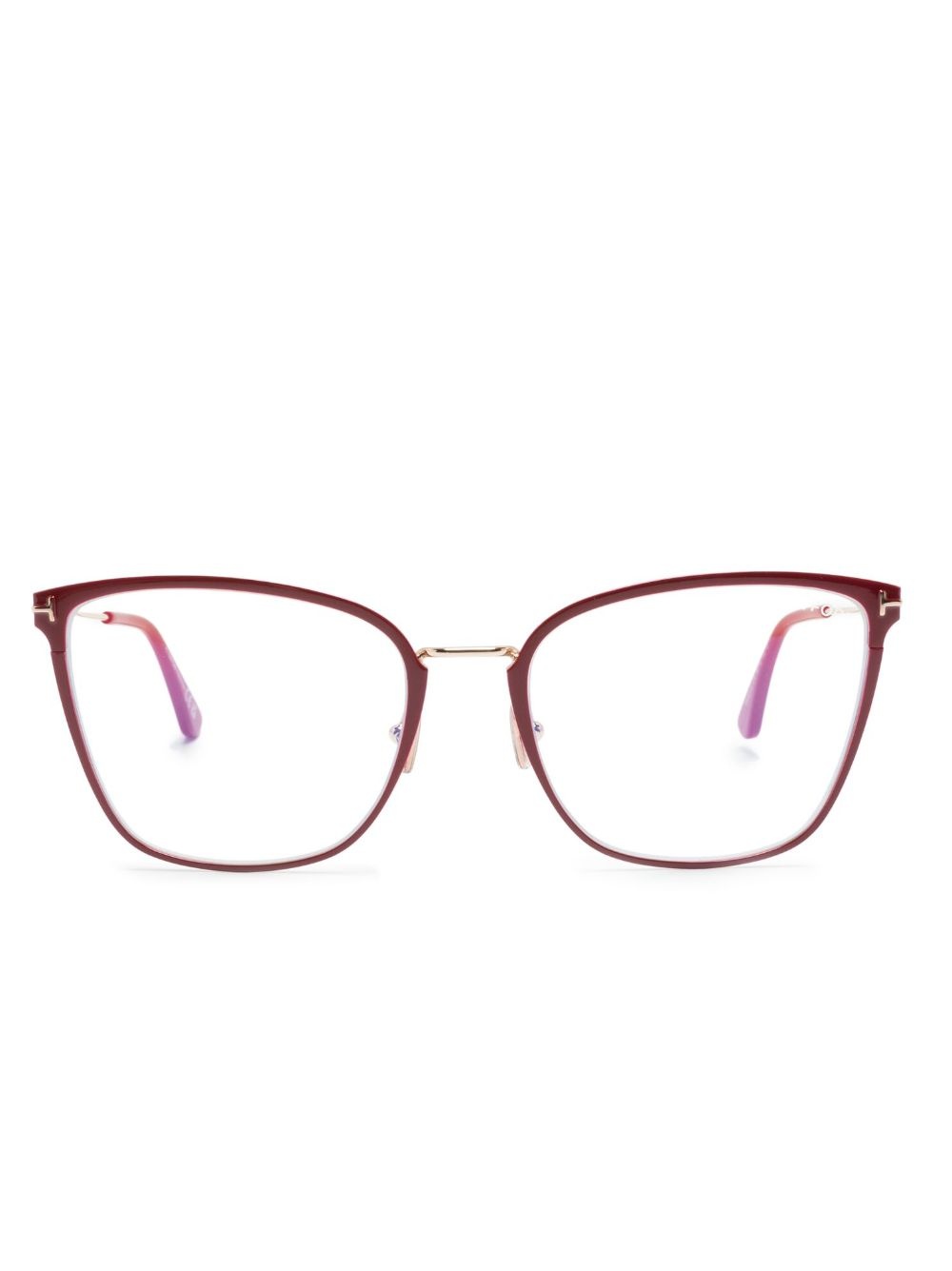 butterfly-frame glasses Highlights - Red/gold-tone - Metal - Clear lenses - Butterfly frame - Debossed logo to the front - Nose pads - Straight arms - Curved tips - These glasses come with a protective case. - All glasses from farfetch are sold as non-prescription frames. Made in Italy Composition Metal (Other) 100% SIZE & FIT Measurement Arm Length 5.51 in(14 cm) Bridge Width 0.7 in(1.8 cm) Lens Diameter 2.2 in(5.6 cm) Total Width 5.47 in(13.9 cm)