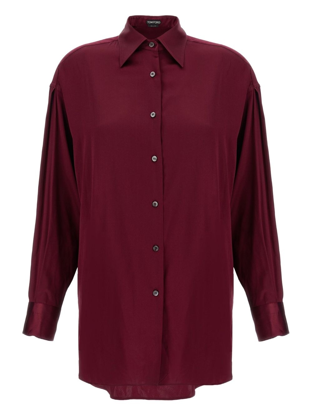 button-cuffed shirt Highlights - Burgundy - Long sleeves - Button fastening - Button-cuffed sleeves - Dropped shoulders Made in Italy Composition Silk 94%, Spandex/Elastane 6% Washing instructions Read Manufacturer Guidelines