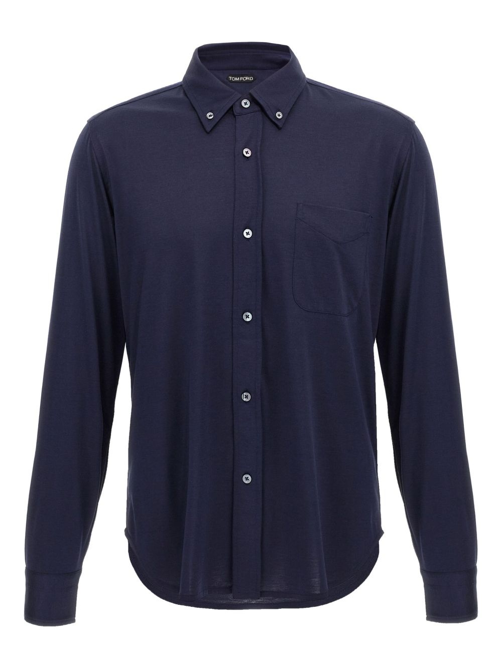 button-up shirt Highlights - Navy blue - Classic collar - Front button closure - Single chest pocket - Long sleeves - Back yoke detail Imported Composition Silk 60%, Cotton 40%