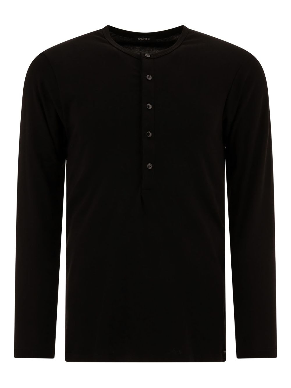 buttoned long-sleeve t-shirt Highlights - Black - Button fastening - Long sleeves - Round neck - Cotton blend Imported Composition Cotton 95%, Spandex/Elastane 5% Washing instructions Read Manufacturer Guidelines