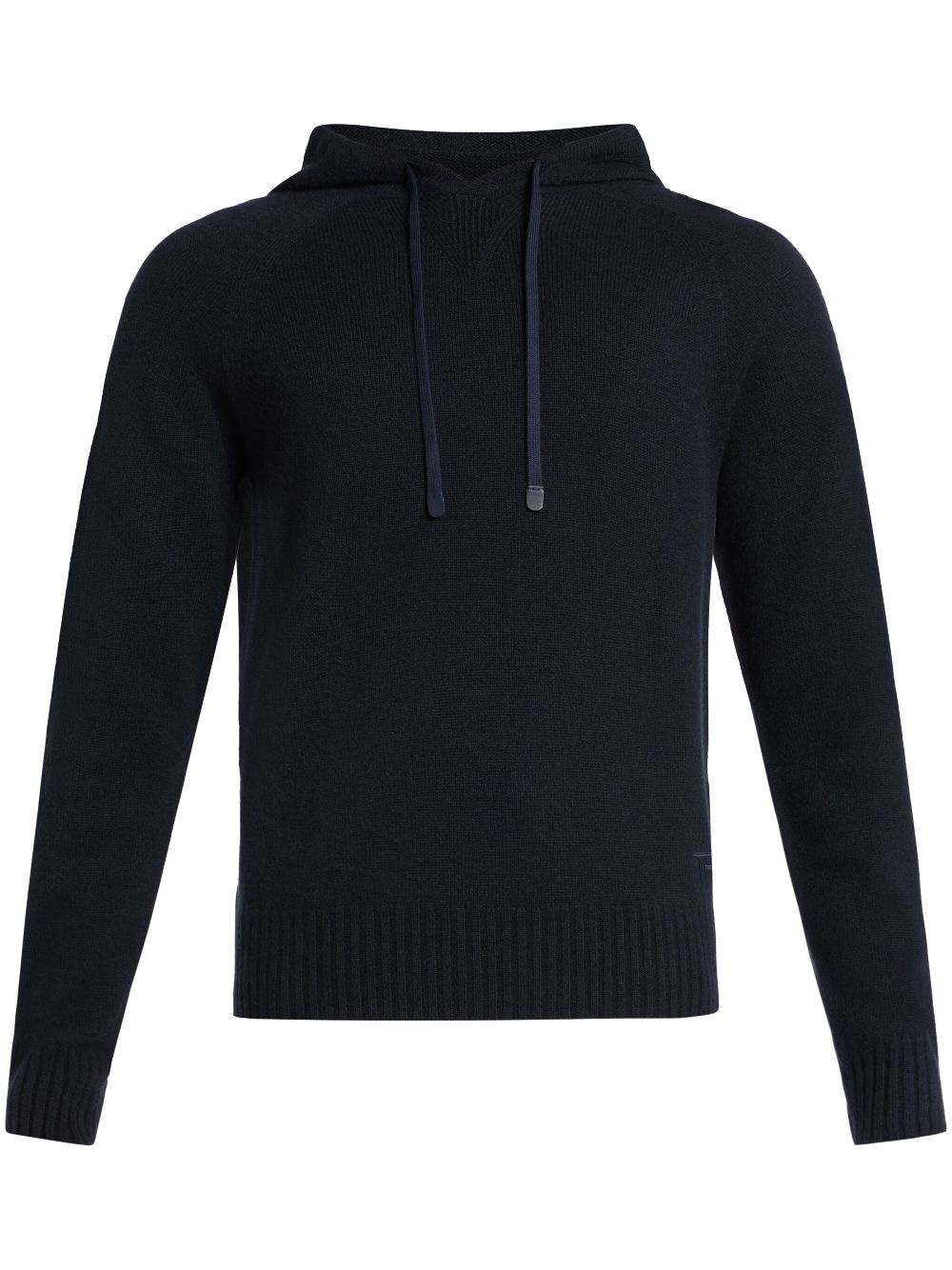 cashmere hoodie Highlights - Navy blue - Drawstring hood - Embroidered logo to the side - Fine knit - Ribbed trim Made in Italy Composition Cashmere 100%, Lambskin 100%