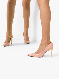chain-trimmed 85mm leather pumps TOM FORD's pumps are a masterclass in refined glamour. Set on a stiletto heel, this blush-pink leather pair is punctuated with a delicate chain ankle strap to match. They're a no brainer. Featuring a mid high stiletto heel, a pointed toe, a leather insole and chain ankle strap. Made in Italy Composition Outer: Calf Leather 100% Lining: Calf Leather 100% Sole: Calf Leather 100% SIZE & FIT Model measurements Height 5 ft 11 in(1.8 m) Bust/Chest 31.49 in(80 cm) Hips 37 in(94 cm) Waist 25.98 in(66 cm) Measurement HEEL 3.54 in(9 cm) HEIGHT 2.36 in(6 cm)