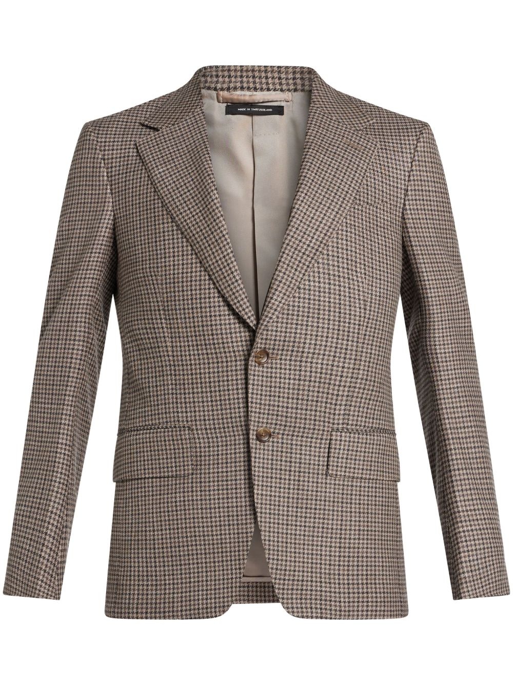 checked blazer Highlights - Brown - Front button fastening - Peak lapels - Two side flap pockets - Long sleeves Made in Italy Composition Outer: Buffalo Horn 100%, Wool 71%, Silk 15%, Linen/Flax 14% Lining: Silk 50%, Cupro 50%