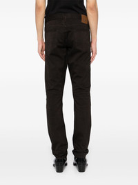 compact twill slim-fit jeans Highlights - Chocolate brown - Front button fastening - Belt loops - Classic five pockets - Logo patch to the rear Made in Italy Composition Cotton 60%, Lyocell 40% SIZE & FIT Model measurements Height 6 ft 2 in(1.88 m) Bust/Chest 34.25 in(87 cm) Hips 34.64 in(88 cm) Waist 26.77 in(68 cm) FittingInformation Designed for a slim fit, these jeans offer a comfortable fit that sits just away from the leg Constructed from stretch denim, this piece offers a stretch fit with durability Washing instructions Machine Wash