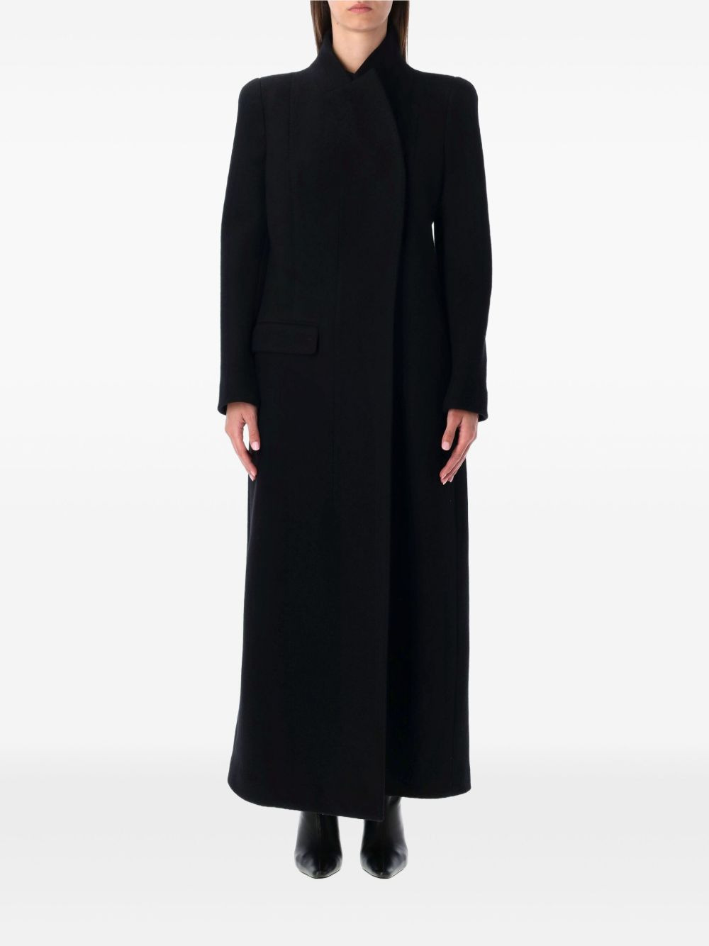 concealed-fastening virgin-wool coat Highlights - Black - Concealed asymmetric fastening - High collar - Long sleeves - Straight hem - A-line shape Made in Italy Composition Virgin Wool 100% Washing instructions Read Manufacturer Guidelines