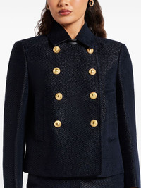 Cropped Peacoat Highlights - Black/blue - Cotton blend - Double-breasted button fastening - Long sleeves - Two side slit pockets - Multiple stitching reinforcement Imported Composition Outer: Viscose 84%, Elastane 12%, Silk 4% Lining: Cotton 56%, Viscose 44% Washing instructions Read Manufacturer Guidelines