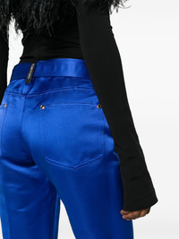 cropped silk satin trousers Highlights - Cobalt blue - Silk satin - Logo-print strap - Belted waist - Slide-lock fastening - Cropped - Two rounded pockets to the sides - Two rear patch pockets - Turn-up hem Made in Italy Composition Lining: Viscose 54%, Polyester 46% Outer: Silk 100% SIZE & FIT Model measurements Height 5 ft 10 in(1.78 m) Bust/Chest 31.49 in(80 cm) Hips 37 in(94 cm) Waist 23.62 in(60 cm) FittingInformation Designed for a straight-leg fit, these trousers allow for a close fit at the waist and an unrestricted, comfortable fit over the leg The belt offers adjustability for fitted preferences Made from a midweight non-stretch fabric This piece fits true to size – take your usual size Washing instructions Dry Clean Only