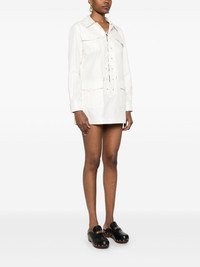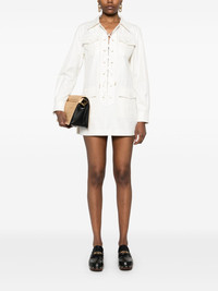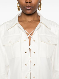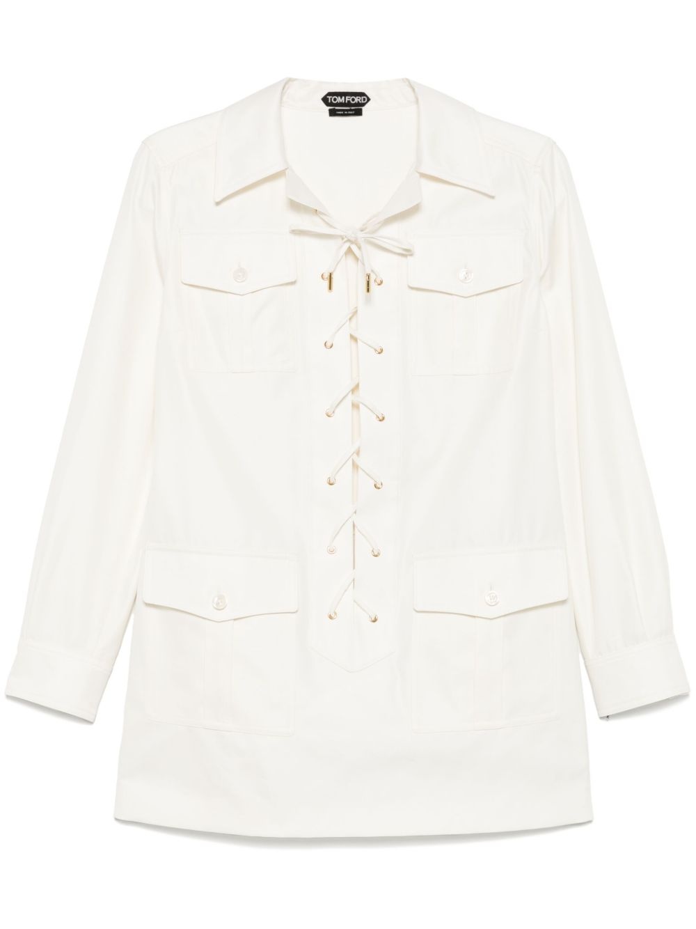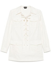 crossover-drawstring tunic Highlights - White - Front lace-up fastening - Four front flap pockets - Side slits - Inverted pleat Made in Italy Composition Cotton 66%, Silk 34% SIZE & FIT Model measurements Height 5 ft 11 in(1.8 m) Bust/Chest 31.49 in(80 cm) Hips 36.61 in(93 cm) Waist 24.4 in(62 cm) FittingInformation Designed for a slim fit that sits just away from the body offering a close yet comfortable fit Made from a midweight non-stretch fabric