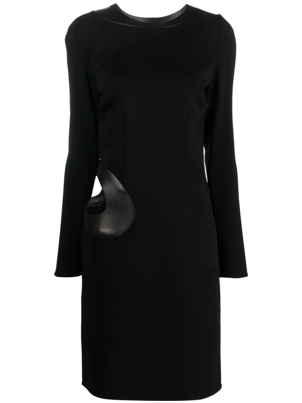 cut-out long-sleeved dress Highlights - Jet black - Stretch-design - Cut-out detailing - Leather trim - Round neck - Long sleeves - Straight hem - Knee-length Made in Italy Composition Lambskin 100%, Viscose 97%, Elastane 3% SIZE & FIT Model measurements Height 5 ft 10 in(1.78 m) Bust/Chest 30.7 in(78 cm) Hips 36.22 in(92 cm) Waist 25.59 in(65 cm) FittingInformation Designed for a slim fit that sits just away from the body offering a close yet comfortable fit Made from a midweight stretch fabric, this piece offers elasticity and flexibility when worn This piece fits true to size – take your usual size