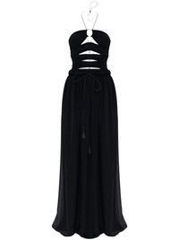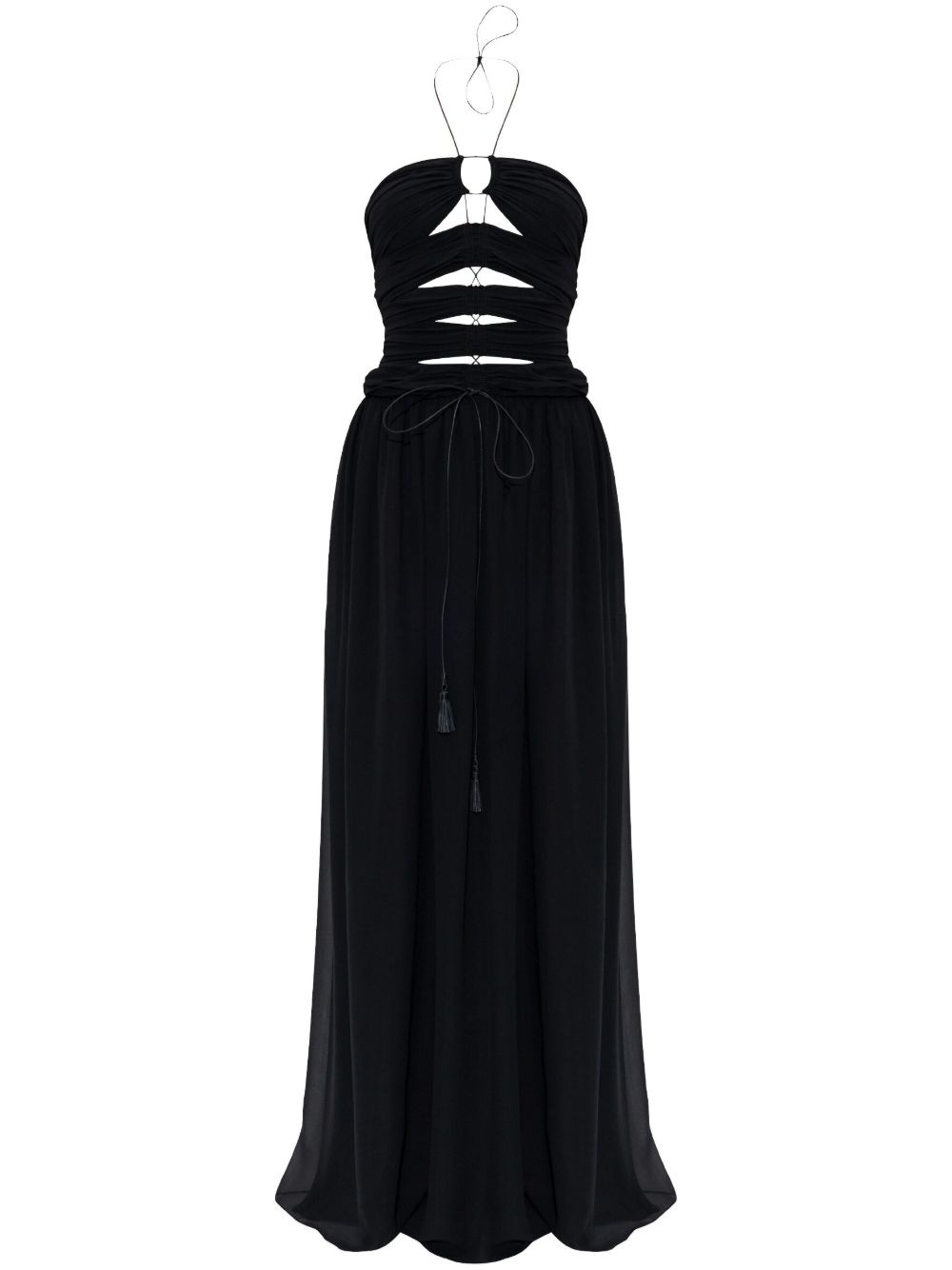 cut-out maxi dress Highlights - Black - Rear zip fastening - Halterneck tie fastening - Front slit - Floor-length Made in Italy Composition Silk 100% SIZE & FIT FittingInformation Designed for a close fit at the chest and waist with a loose fit at the hip The adjustable drawstring means that you can adjust this piece’s fit to suit your comfort and preference Made from a lightweight non-stretch fabric