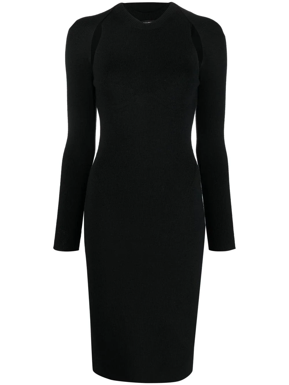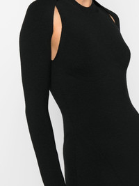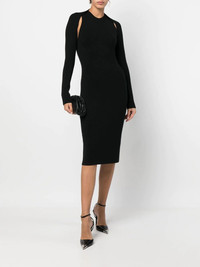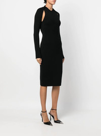 cut-out ribbed midi dress Spun in Italy from a soft blend of virgin wool, this black midi dress from Tom Ford is given a signature contemporary appeal thanks to cut-out details at the shoulders and silhouette-hugging fit. Made in Italy Composition Polyamide 6% Lining: Virgin Wool 94% SIZE & FIT Model measurements Height 5 ft 10 in(1.78 m) Bust/Chest 33.07 in(84 cm) Hips 35.82 in(91 cm) Waist 25.98 in(66 cm) FittingInformation This piece fits true to size. We recommend you get your regular size Designed for a close fit at the bust, waist and hips Made with a mid-weight fabric Washing instructions Dry Clean Only