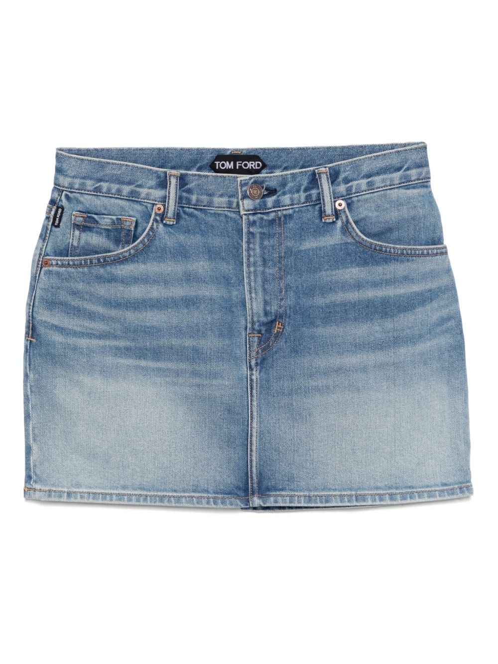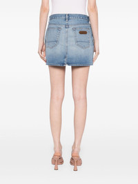 denim skirt Highlights - Pastel blue - Front button and zip fastening - Belt loops - Classic five pockets Made in United States Composition Cotton 98%, Elastane 2% SIZE & FIT Model measurements Height 5 ft 9 in(1.76 m) Bust/Chest 31.1 in(79 cm) Hips 35.03 in(89 cm) Waist 24.4 in(62 cm) FittingInformation This mini-length skirt is intended to be worn just below the waist The vented hem offers movement at the rear Constructed from stretch denim, this piece offers a stretch fit with durability