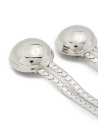 dome-braided earrings Highlights - Silver - Dome embellishment - Braided chain - These earrings come as a pair. Made in Italy SIZE & FIT Model measurements Height 5 ft 9 in(1.75 m) Bust/Chest 34.64 in(88 cm) Hips 36.61 in(93 cm) Waist 26.37 in(67 cm) Measurement HEIGHT 4.72 in(12 cm) Weight (single earring) 28 g(28 g) WIDTH 0.94 in(2.4 cm)