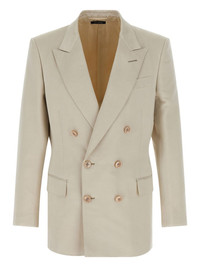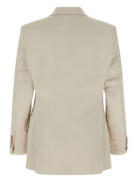 double-breasted blazer Highlights - Beige - Double-breasted button fastening - Chest welt pocket - Flap pockets - Buttoned cuffs - Back slits Made in Italy Composition Outer: Cotton 61%, Silk 39% Lining: Cupro 100% Washing instructions Read Manufacturer Guidelines