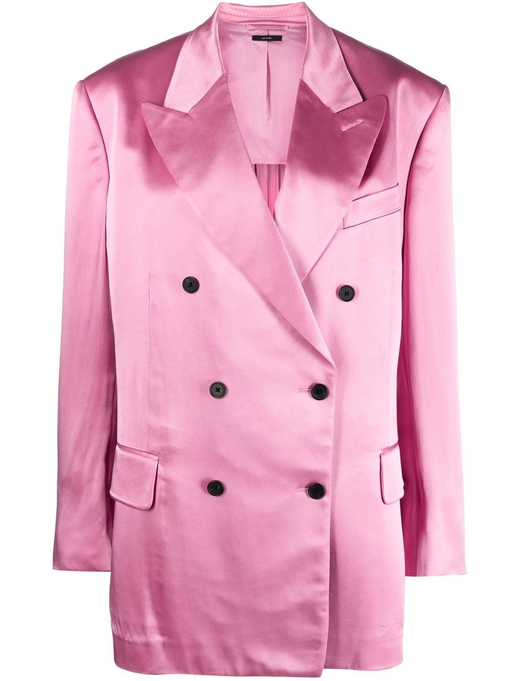 double-breasted long-sleeve blazer pink peak lapels double-breasted button fastening chest welt pocket two front flap pockets long sleeves buttoned cuffs straight hem Made in Italy Composition Outer: Acetate 65%, Viscose 35% Lining: Viscose 54%, Polyester 46% SIZE & FIT Model measurements Height 5 ft 10 in(1.77 m) Bust/Chest 32.67 in(83 cm) Hips 35.43 in(90 cm) Waist 23.62 in(60 cm) FittingInformation This piece fits true to size. We recommend you get your regular size Cut for a loose fit Made with a mid-weight non-stretch fabric Measurement SLEEVE LENGTH 24.01 in(61 cm) LENGTH 30.7 in(78 cm) Washing instructions Dry Clean Only