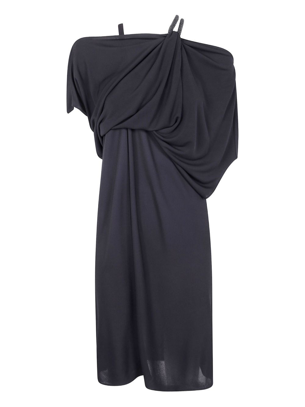 draped dress Highlights - Black - Draped neckline - Embellished straps Imported Composition Viscose 100% Washing instructions Read Manufacturer Guidelines